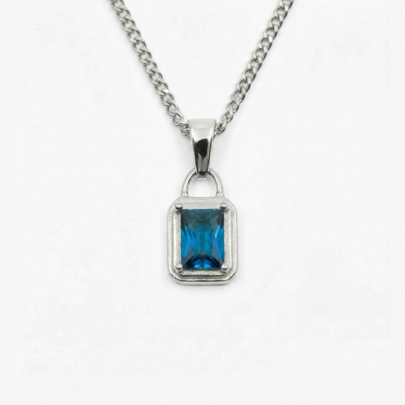 The Azure Pendant is a sharp, versatile addition to any rotation. With its deep-blue zircon stone precision-cut and set in a clean silver colored frame, it stands out without trying too hard—the kind of piece that gets noticed.